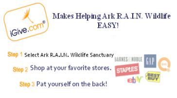 | #1- Remember the animals when you shop online. By using our link below to shop at over 1900 stores, sponsors will donate a percent of your purchase price to the ARWS animals and it doesn't cost you a dime!!! Please help by using our Igive link each time you shop. |